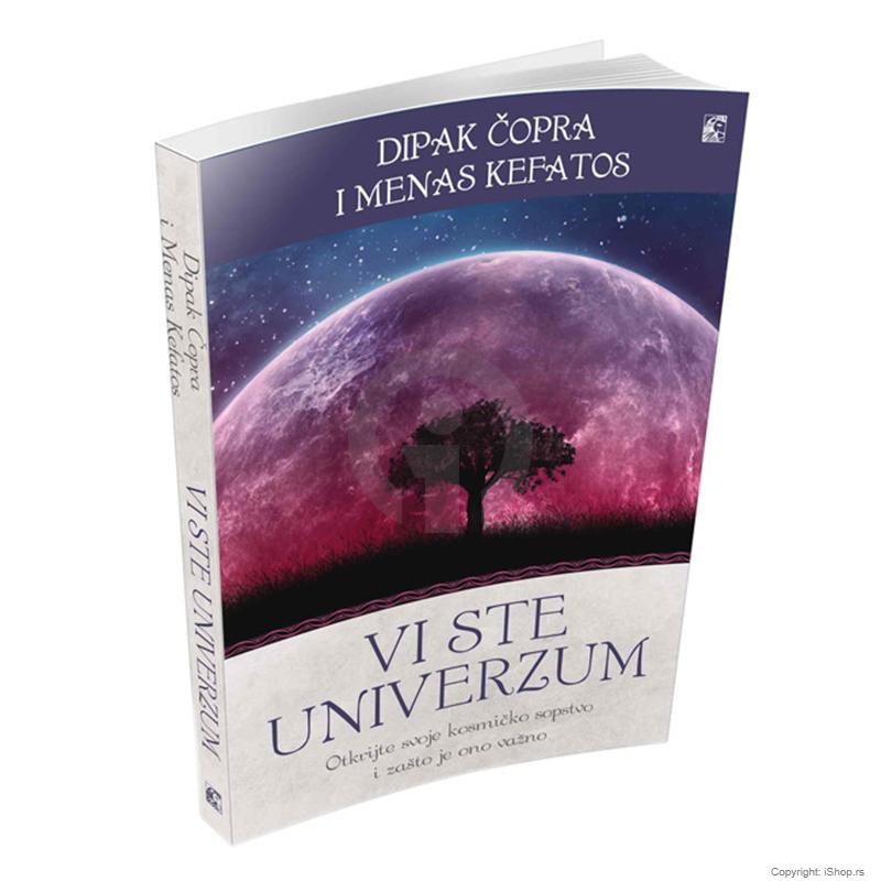 Pisac bestselera Njujork tajmsa, Dipak Čopra, udružuje snage s vodećim fizičarem, Menasom Kefatosom, kako bi istražili neka od najvažnijih i najmisterioznijih pitanja o našem mestu u svetu.U ovoj briljantnoj, bezvremenoj i praktičnoj knjizi Čopra i Kefatos govore da smo upravo stigli do te tačke. U eri koja dolazi univerzum će biti ponovo određen kao ljudski univerzum?, potpuno drugačiji od hladne praznine u kojoj je čovekov život samo tačkica u kosmosu.Knjiga Vi ste univerzum doslovno kaže da svako od nas učestvuje u stvaranju realnosti koja se proteže na najšira prostranstva vremena i prostora. Ova naizgled nemoguća tvrdnja proizilazi iz trenutnog stanja u nauci gde, daleko od očiju javnosti, neke ključne misterije ne mogu da budu razrešene, bez obzira na to što predstavljaju pitanja koja definišu samu realnost: Šta je bilo pre Velikog praska? Zašto se sve u univerzumu tako savršeno uklapa? Odakle potiče vreme? Od čega je sačinjen univerzum? Da li je kvantni svet povezan sa svakodnevnim životom? Da li živimo u svesnom univerzumu? Kako je nastao život? Dolazi do promene paradigme i stvara se novi pogled na svet?, pišu autori. Odgovore koje nudimo u ovoj knjizi, nismo mi izmislili niti predstavljaju ekscentrične uzlete naše mašte. Svi mi živimo u zajedničkom univerzumu. Kad odlučite da učestvujete u njemu umom, telom i dušom, promena postaje lična. Realnost u kojoj živite biće vaša i možete da je prihvatite ili promenite.? Ono što nam ova dva velika uma nude je novo, smelo shvatanje onoga što jesmo i kako možemo da promenimo svet nabolje istovremeno ostvarujući svoj najviši potencijal.