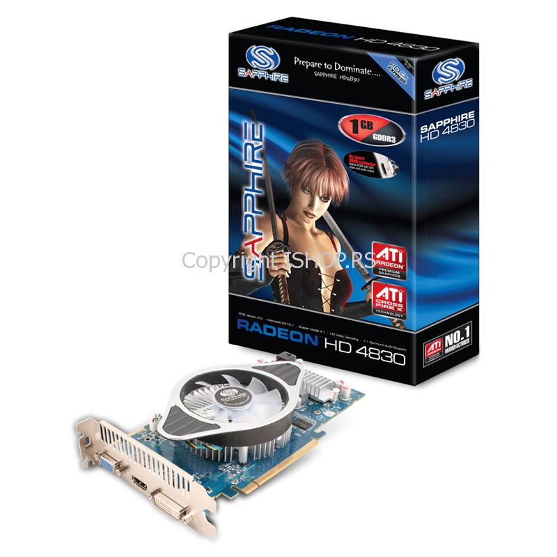 Grafička VGA kartica Sapphire ATI Radeon HD4830 1GB GDDR3 PCI-E DUAL DVI-I TVO 11147-02-10R, PCI Express x16 slot, maksimalna rezolucija 2560 x 1600 piksela, Dva DVI-I izlaza, TV out, HDTV podrška.
