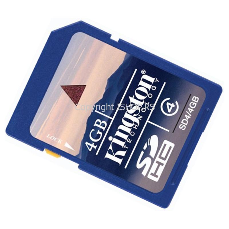 Fleš memorijska kartica Secure Digital High Capacity KINGSTON SD4/4GB 4GB SDHC Card Class 4, minimalna brzina prenosa podataka 4 MB/sekundi .